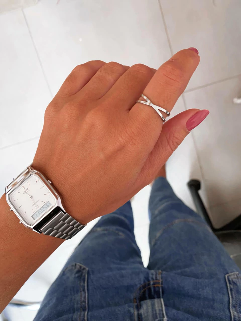 Anel em aço inox duplo cruzado minimalista - COD. A395